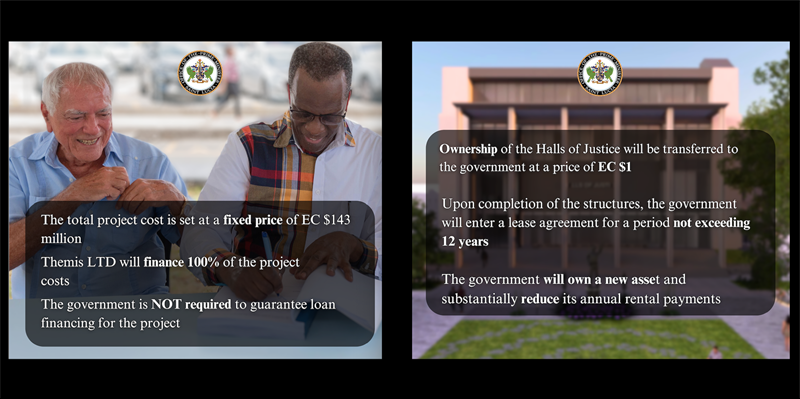 • At the end of the lease period, ownership of the Halls of Justice will be transferred to the Government of Saint Lucia at a price of EC $1.